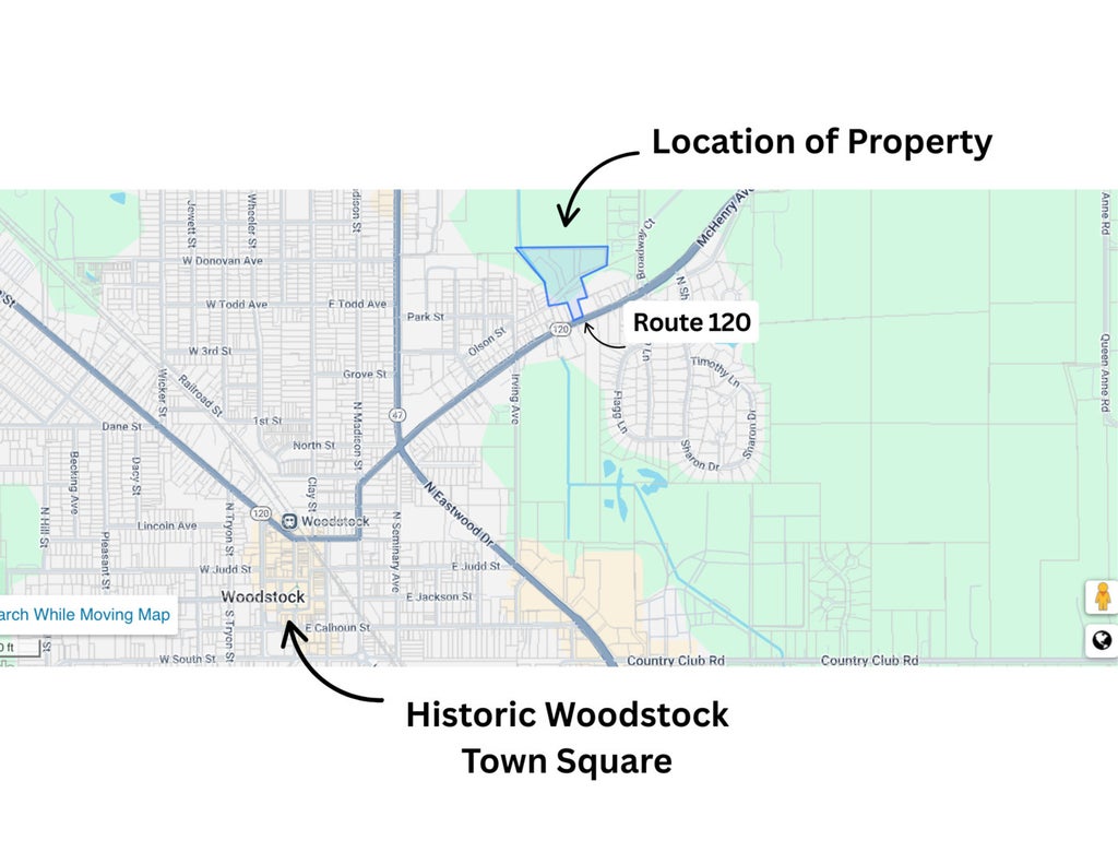 Developers Dream! Unlock exceptional development potential with this expansive parcel of nearly 9 acres, ideally situated just 1 mile from the historic downtown square in Woodstock, Illinois. Boasting 110 feet of frontage on Route 120, this property offers outstanding visibility and accessibility. Its prime location is further enhanced by its scenic surroundings, backing onto beautiful parks and open fields, providing a tranquil yet convenient setting. This land is perfectly positioned to capitalize on the area's growing demand. Property is zoned residential (R1B), which allows for single family home development and also retirement communities (with special use permit), with potential to be rezoned with board approval. Property also has an adorable Tudor-style home with 3 bedrooms and 1.5 bathrooms with large, detached garage and significant rental income potential. Home is being sold As-Is. This is a rare opportunity to acquire a substantial parcel in a sought-after location!