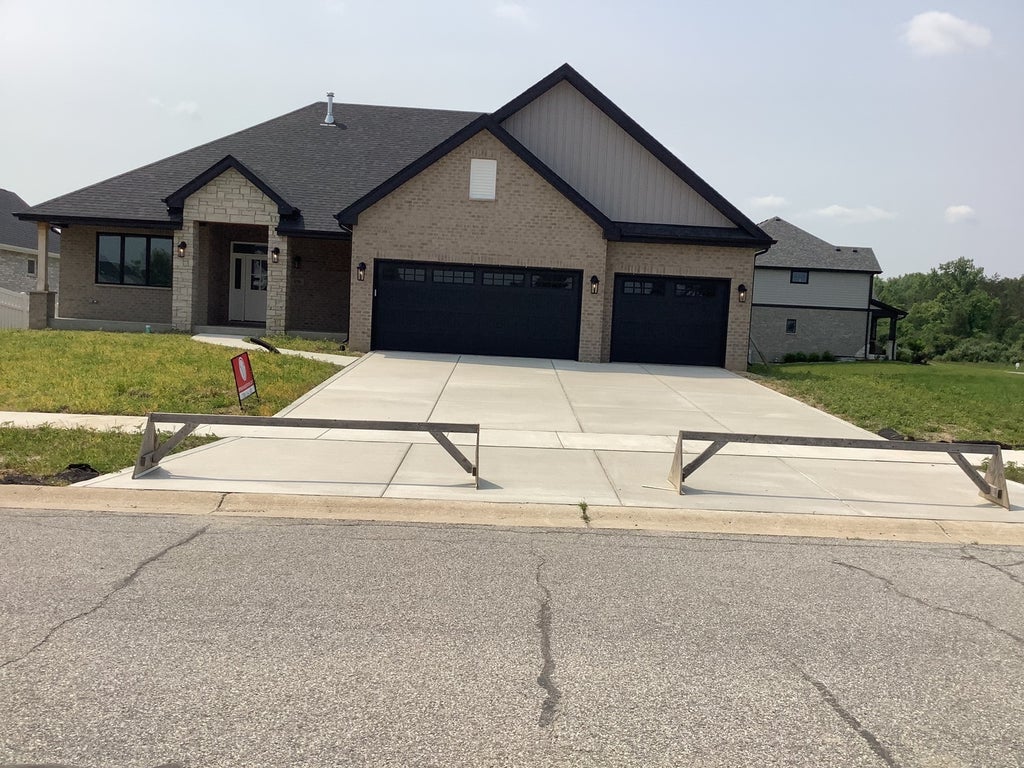 This beautiful brick and stone 3-bedroom ranch home, located in Highpoint Prairie of Dyer, combines elegant design with comfortable living. The open-concept great room and kitchen features hand-finished white oak floors, a brick fireplace, 10' ceilings, picture windows,and a gourmet kitchen featuring quartz countertops, a large entertainment island, stainless steel sink, custom-built beverage center,and a walk-in pantry. Beyond the kitchen is the sun room again with beautiful white oak floors, glass French doors, and large windows on all sides for plenty of natural light. The sun room can serve as a second entertainment area, a home office, or simply a quiet place to relax. The master bedroom has a 10' tray ceiling and features a private bathroom with an oversized shower, a quartz double vanity, and a private water closet. This home also features a 3-car garage, daylight basement with 9' ceilings and Trex decks with both a covered deck area and an open deck area. Price Adjustment now includes full landscaping, automatic lawn irrigation, and stainless steel kitchen appliances.