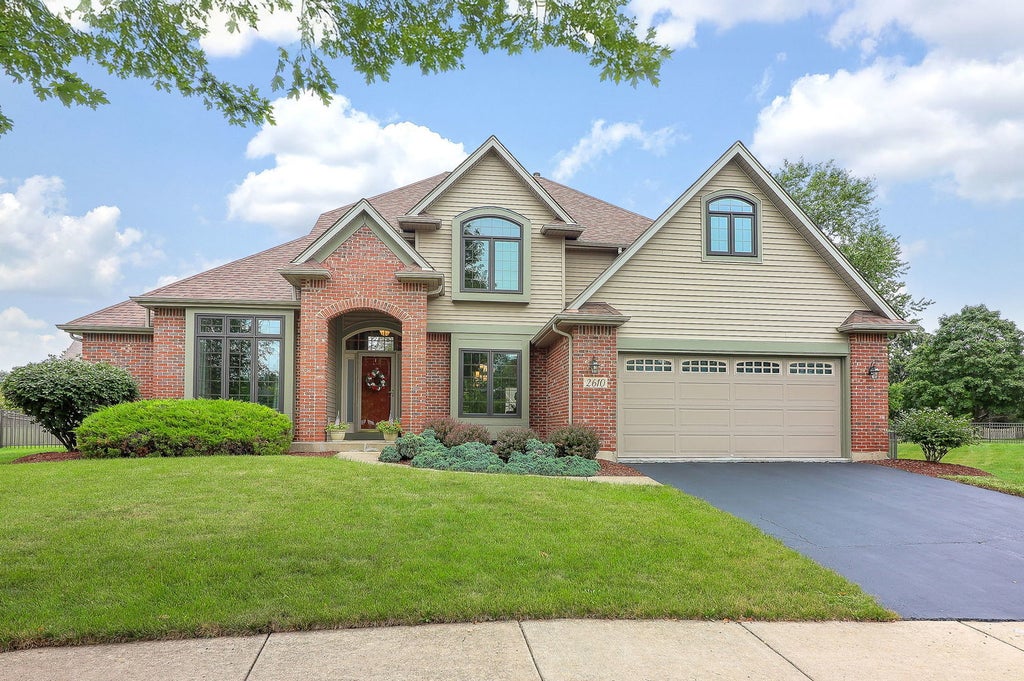 Welcome to this lovingly cared for home located on a quiet cul-de-sac within the incredible pool and clubhouse community of Oakhurst North. Step into the 2-story foyer and you'll immediately notice the abundant natural light, crown molding, and thoughtful touches throughout. The FIRST FLOOR PRIMARY SUITE boasts tray ceilings, a walk-in closet with custom organizers, and a spa-like bath with vaulted ceilings, skylight, dual sinks, soaking tub, and separate shower. A convenient first-floor powder room and laundry/mudroom add everyday functionality. The kitchen features white cabinets, stainless steel appliances, and an island that opens to the 2-story family room, highlighted by a stunning 2-story brick wood-burning fireplace with gas start. A three-paneled doorway leads to the brick paver patio overlooking the professionally landscaped, fully fenced backyard - perfect for relaxing or entertaining. A first-floor office adds flexibility for working from home. Upstairs, you'll find 3 additional bedrooms plus a tandem bonus room with vaulted ceilings. The second-floor bathroom offers dual sinks, providing plenty of space for busy mornings. The finished basement includes a kitchen area that opens to a media room wired for surround sound, as well as 2 versatile rooms ideal for a rec room, potential 5th bedroom, or playroom. There's still room for a fitness area and plenty of storage. All this sits on a third of an acre, within the boundaries of highly rated District 204 schools and close to Young Elementary and Oakhurst North Sportscore. Conveniently located near the Metra and interstate for an easy commute! Updates include all new custom Jeld-Wen windows (2017) siding & roof (2018), fridge, microwave & dishwasher (2019), all new first-floor lighting, new carpeting upstairs, and new flooring & utility sink in the laundry/mudroom.