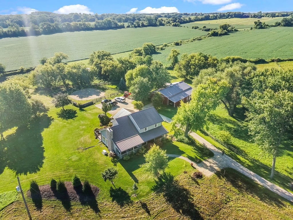 Looking for privacy and acreage while still being close to most of today's conveniences? This Modern Farmhouse sits on 63+ acres and has so much to offer... Enjoy the sun setting while relaxing on the 8' x 52' covered front porch or entertain on the "Trex" Deck with access from the dining room... The home has a country style kitchen that was recently upgraded with quartz counter-tops & has a large island. The master suite is on the 1st floor & features a recently updated master bathroom with dual quartz vanities, large walk-in closet & access to the covered front porch.... The roof was replaced in 2017 & there is a whole house backup generator to ease your mind when its stormy outside.... "Rush Creek" winds through the property & there are several natural prairie land areas plus well maintained trails throughout... The main barn has 4-stalls plus a tack room... Several fenced pastures & paddocks, run in shelter, chicken shed & storage buildings. All of the fencing has been well maintained.... The Rush Creek Conservation Area is within walking distance with access to hiking, camping & additional horse back riding trails... A property Feature Sheet and Rush Creek Conservation flyer available upon request.