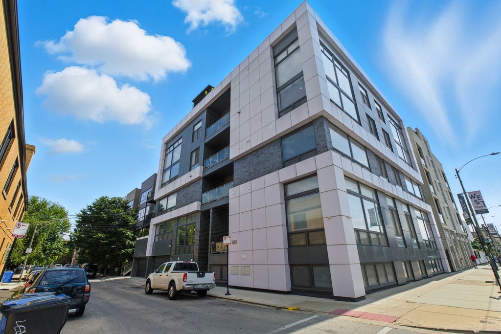 SIGNIFICANT PRICE IMPROVEMENT! INCREDIBLE OPPORTUNITY! Not On Ashland! Very Quiet, Very Private facing Fry St! Over 2500 SqFt! Soaring 14' ceilings! Huge, private terrace! Lives like a Single Family Home! Are you looking for the exceptional? Welcome-in to this STUNNING triplex home unlike any ordinary condo you will see. Recently built, this three-level custom home exudes features you simply won't find anywhere else. Starting with the layout; a perfect blend of open concept while providing intentional designated spaces for living, dining, and separate family room entertaining spanning more than 2500 SqFt!. Enter into the main living level and immediately be taken aback by the soaring 14 foot ceilings and floor-to-ceiling wall of windows - extraordinary! Huge open living space. A sizeable coat closet and half-bath on this level. Ascend a few stairs to the top floor, which uniquely remains open to the main living level visible through an amazing glass railing! Here you'll find a true chef's kitchen with high-end Thermador appliances; a rich-tone paneled professional sized fridge and freezer, the sought-after 36 inch, 6 burner range, Copat cabinetry and an abundance of storage and counterspace including a 6-foot island. The adjacent Dining space easily accommodates a table for 8. Accessible from the kitchen awaits your outdoor sanctuary! A completely private 35'x14' terrace outfitted in ceramic patio tiles and equipped with a pergola, water, electric. Outdoor entertainment accessible for TV and sound. The Primary Suite is a true retreat! Easily accommodating any size furniture with a large custom-organized closet and a spa-like bath highlighted by heated floors, a wet-room area with huge shower with rainshower head and wall mounted body sprayer plus a soaking tub. Double bowl vanity and linen-storage. The full view glass wall/window can be kept clear or frosted for added privacy and yet another feature truly unique! Rich, hand-sewn hardwood floors adorn these top 2 levels. The lower level of this home is amazing! Soaring nine-foot ceilings and radiant heated tile floors! A huge family room, two additional, spacious bedrooms both with great walls of closets! The third bedroom features custom glass french-doors making it the perfect flex space for office, workout room! True luxury and an entertainer's dream feature is the custom built 63 bottle glass wine room for the entertaining and wine enthusiast. - absolutely stunning! A full bath with oversized vanity and gorgeous tile. A large utility room with washer and dryer completes this level. Exit from either the lower-level or the 1st floor to access your attached garage parking space - the ultimate in convenience and comfort for its proximity, security and protection from the elements! The entire home features custom closets and professional windows treatments including Hunter Douglas automated blinds with top-down bottom-up capabilities to set the optimal natural light. A well-run HOA with ultra-high Owner-occupancy. Enjoy low assessments in a top-quality building. Superb location in the Noble Square neighborhood of WestTown with tons of trendy eateries and shops and the best transportation options. Building is on the corner of Fry and Ashland; this unit does not face Ashland, it is so peaceful and serene!