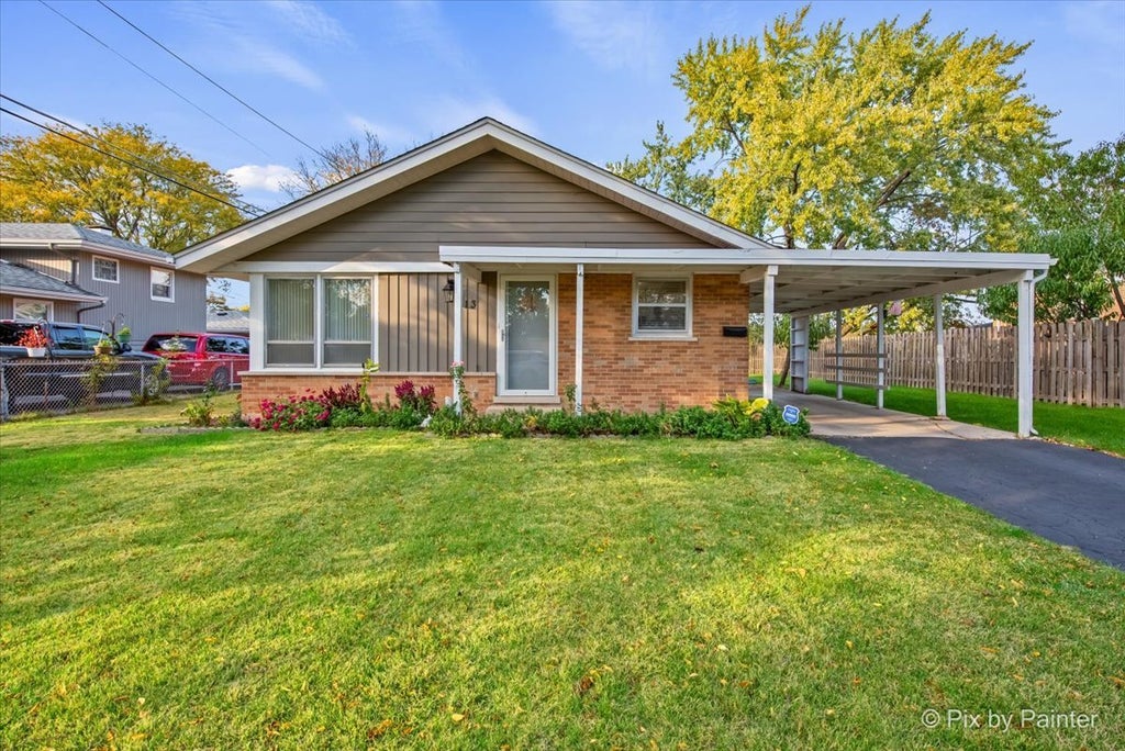 Welcome home to this beautifully maintained 3-bedroom, 1-bath ranch filled with charm and modern updates. Step inside to a bright, white eat-in kitchen remodeled in 2020, featuring granite countertops, newer white appliances, and plenty of cabinet space - perfect for cooking! The spacious living room offers great natural light and a comfortable layout, while all three bedrooms are generously sized to fit queen beds and large furniture, complete with ample closet space. Recent bathroom remodel with gorgeous tile work. Enjoy the convenience of a long private driveway and covered carport, which could easily be converted into a full garage. The huge backyard is a true highlight - surrounded by mature trees for privacy and shade, with two storage sheds for all your tools and outdoor gear. Major updates include a NEW ROOF (2023), water heater 2020, providing peace of mind for years to come. Located in a quiet, established neighborhood schools, parks, shopping, Metra train, and major highways, this home offers both comfort and convenience. Don't miss your chance to own this turnkey home in desirable West Chicago - schedule your showing today!